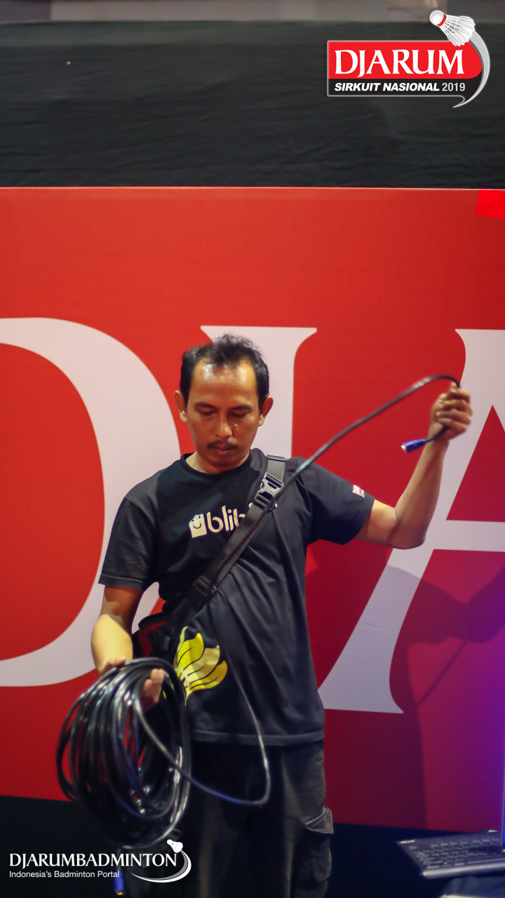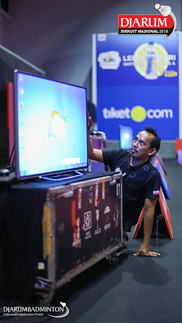 Salah satu pekerja sedang mengerjakan perlengkapan logistik Djarum Sirkuit Nasional Li Ning Nusa Tenggara Barat Open 2019