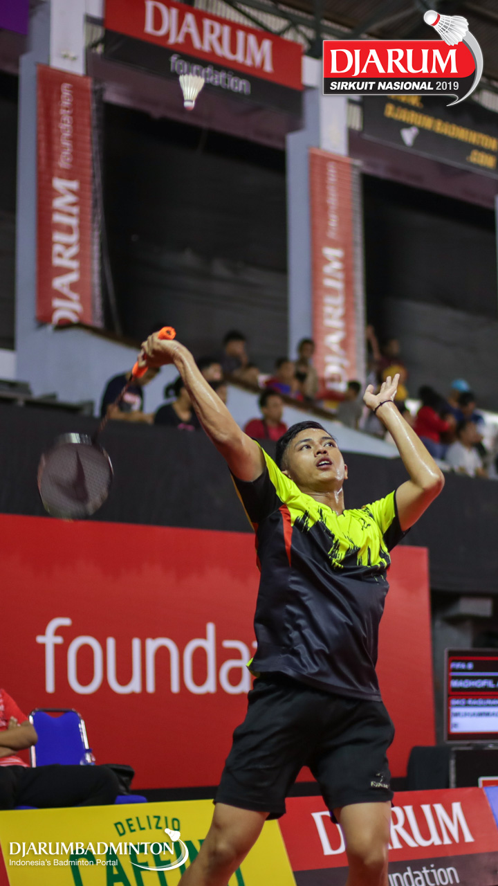 Ridwan Anas (Indocafe, Medan) menyambut shuttlecock