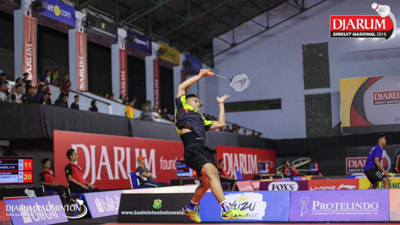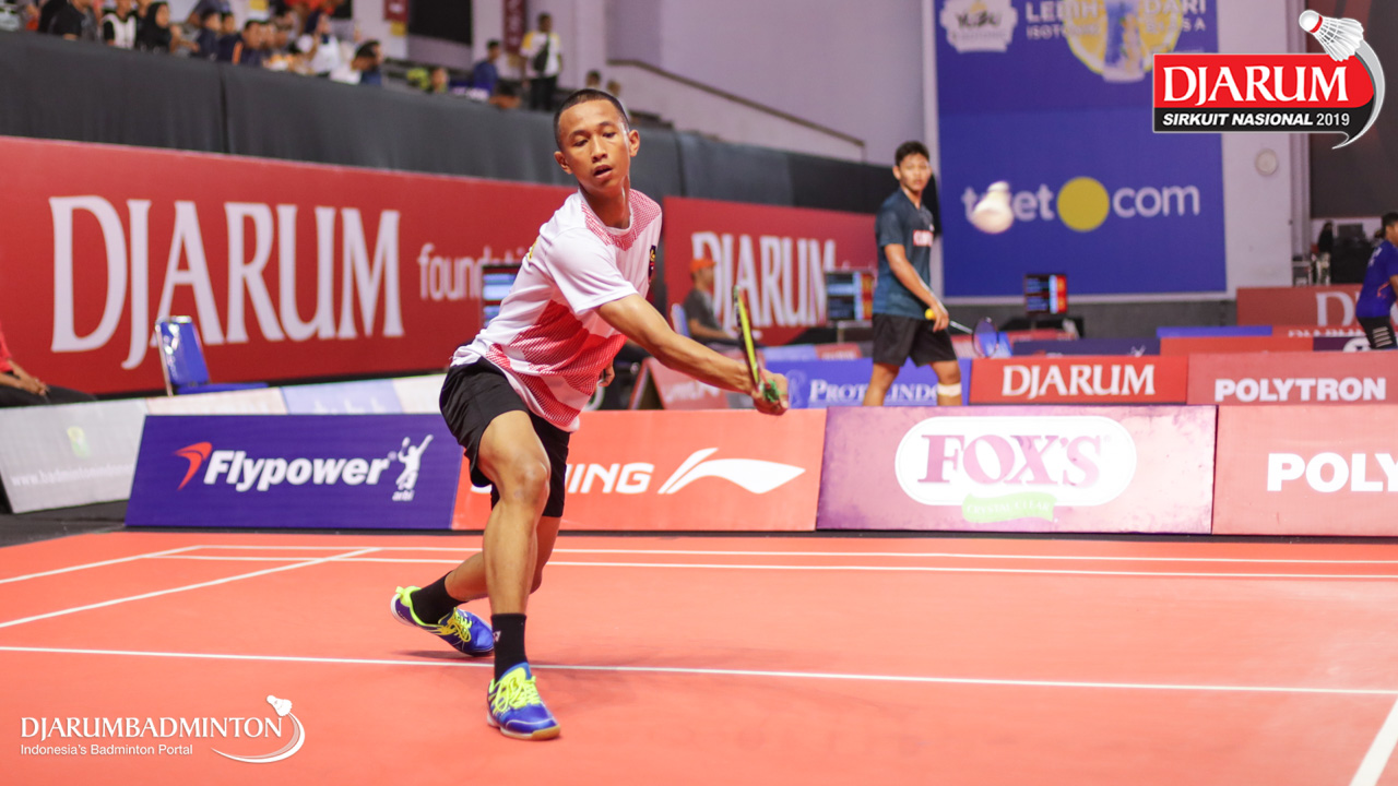 Galih Prasetyo Utomo (Nikko Steel Malang) mengembalikan shuttlecock