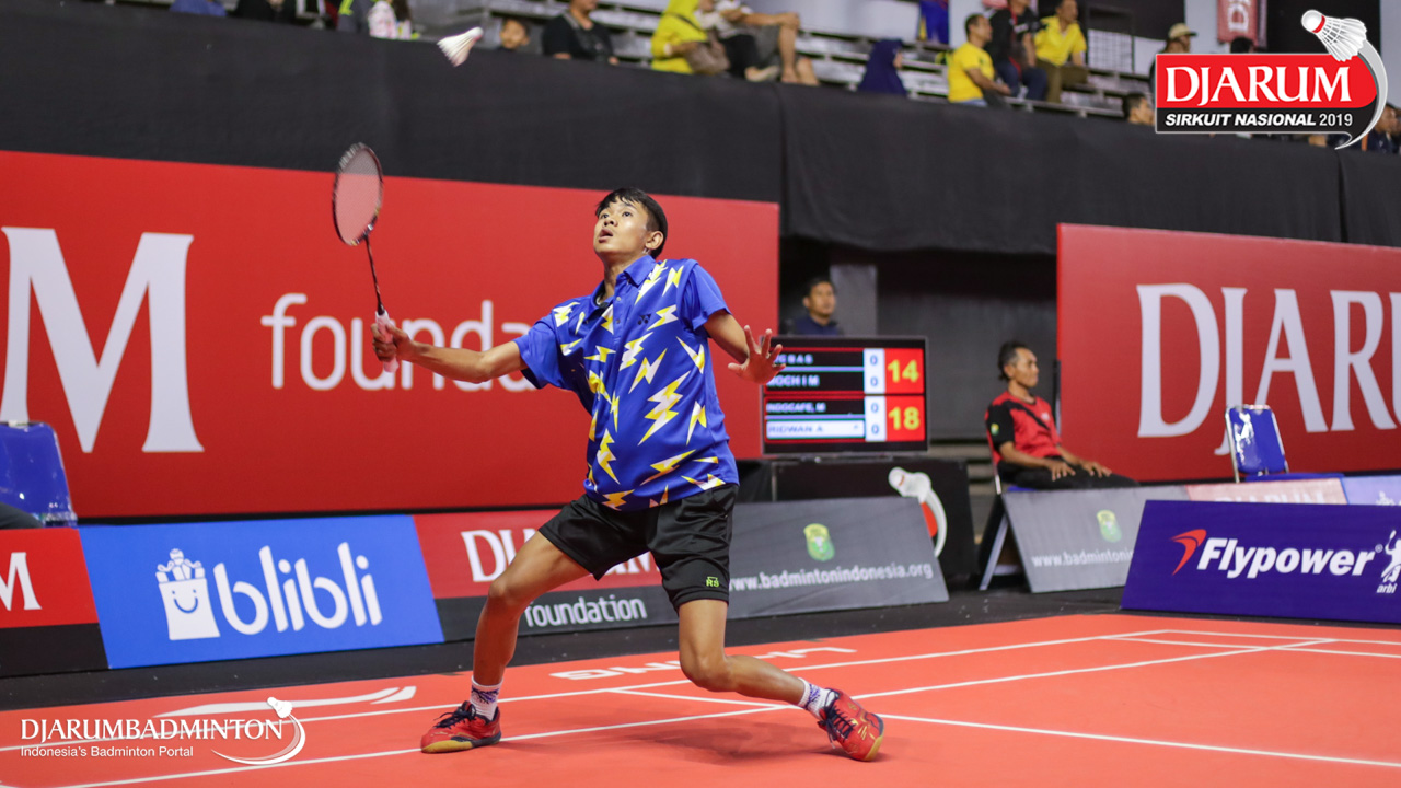 Galih Prasetyo Utomo (Nikko Steel Malang) bersiap menyambut shuttlecock