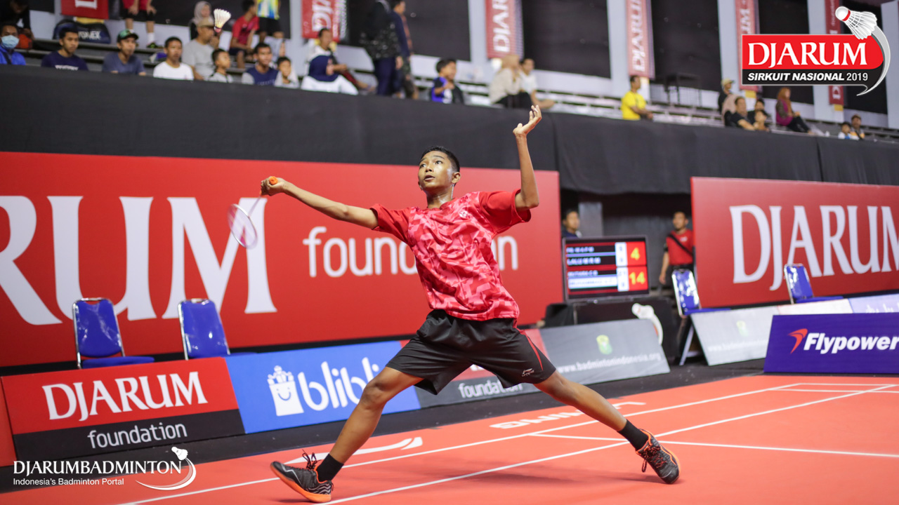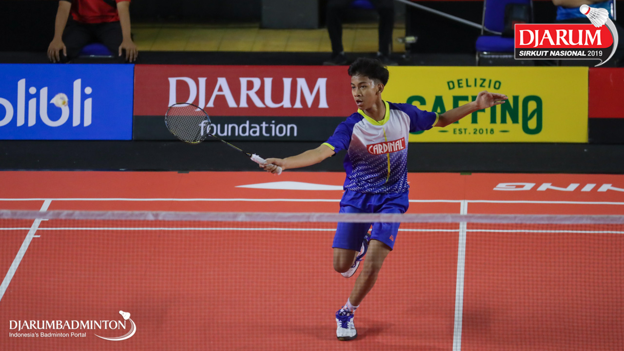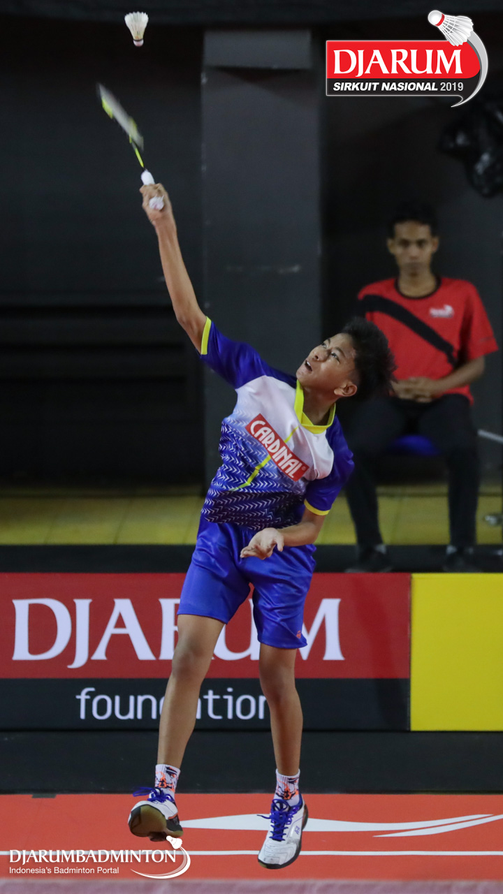 Muhammad Fachri Akbar Romadhon (Sekolah Khusus Olahraga Ragunan) bersiap menyambar pengembalian