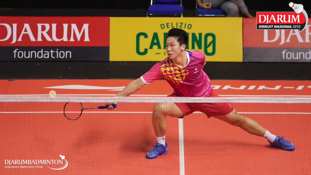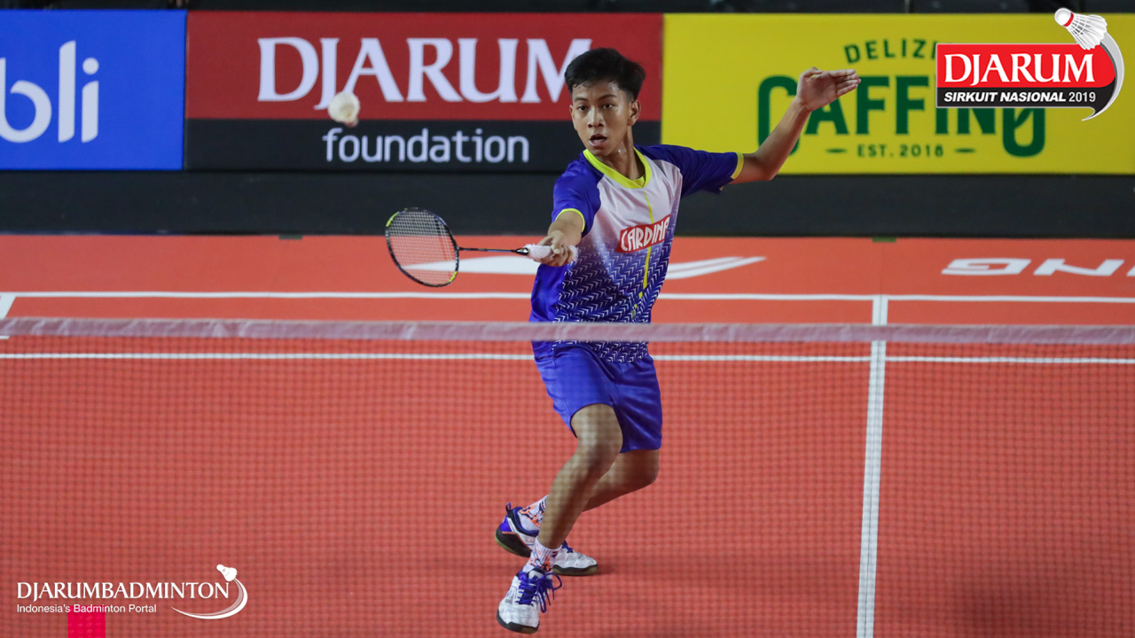 Jafar Hidayatullah (Ardes Rajawali Isvill) bersiap menyambut shuttlecock