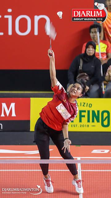 Debora Pungky Cahyadewi (PB. Inti Badminton Club Klaten) menyambar pengembalian