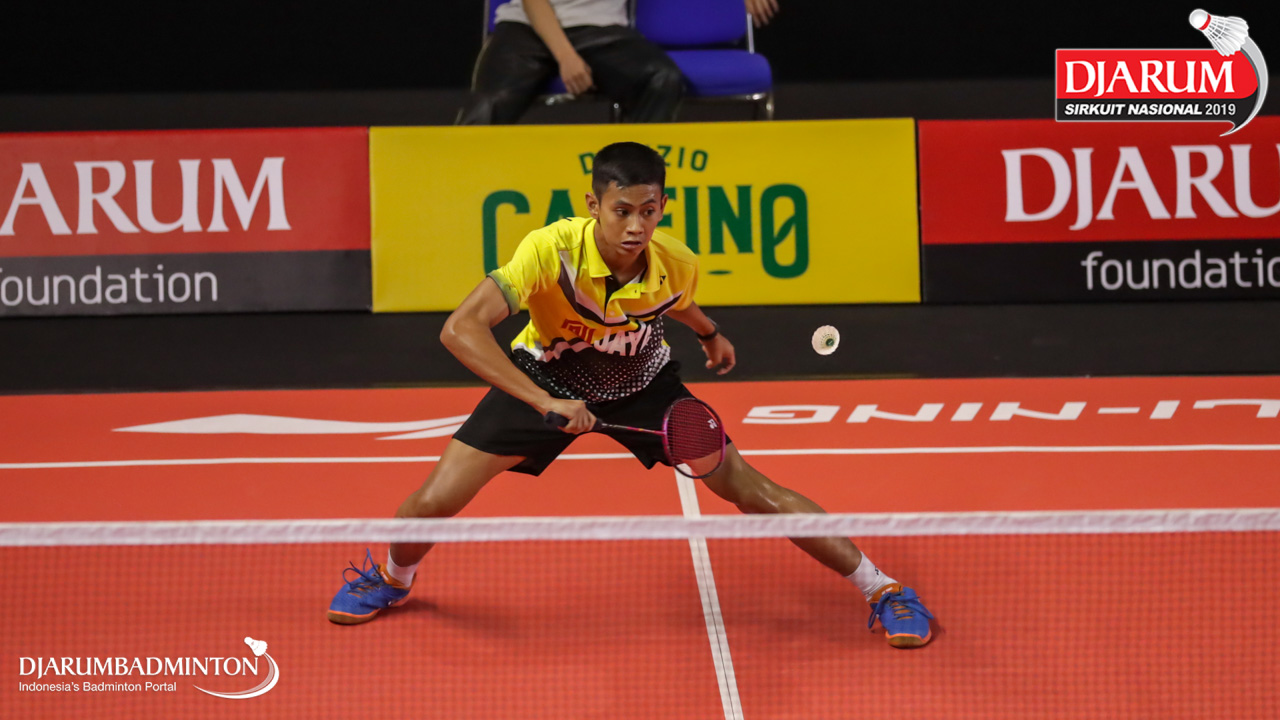 Abdul Barry Worontika (PB. Warna Agung Perkasa, Mataram) menyambut shuttlecock