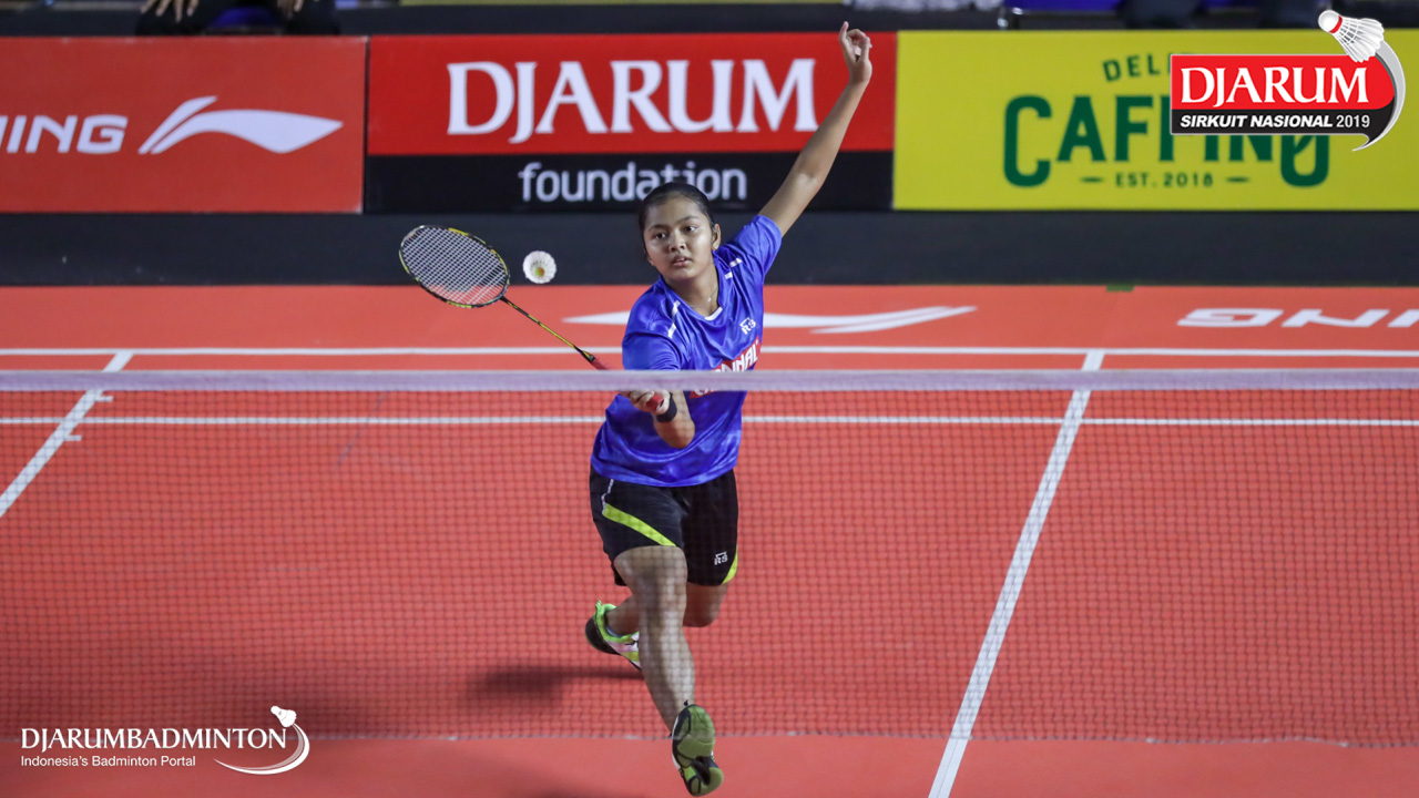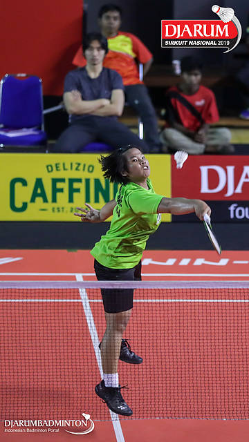 Elok Machsunnah (Bayu Kencana, Pasuruan) bersiap menyambar shuttlecock