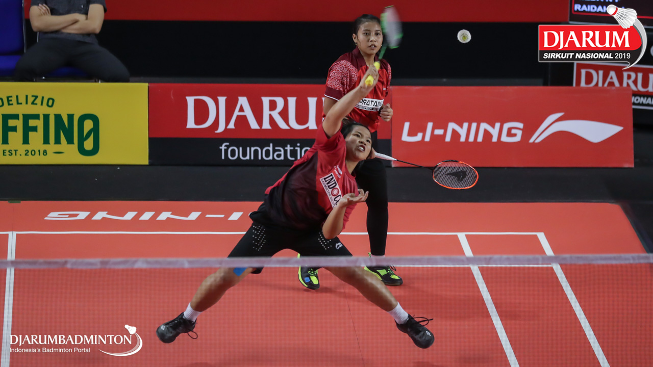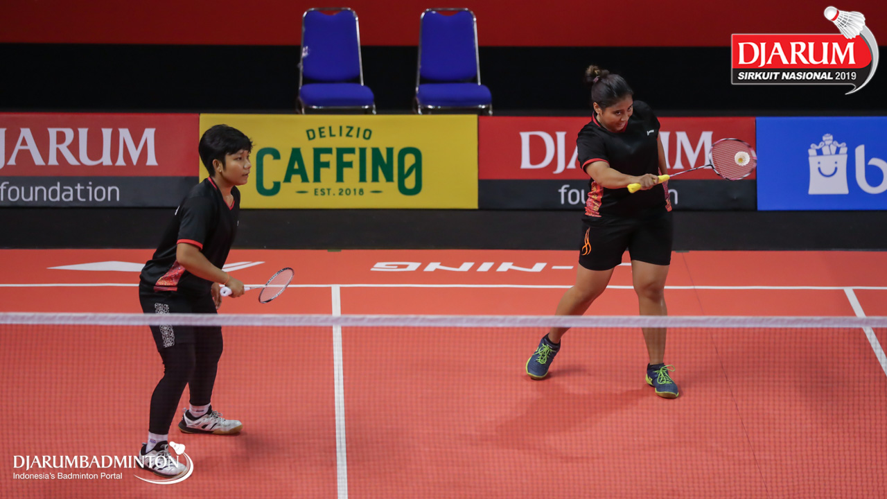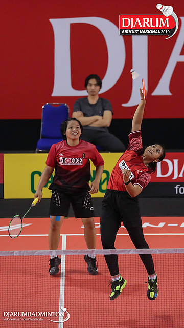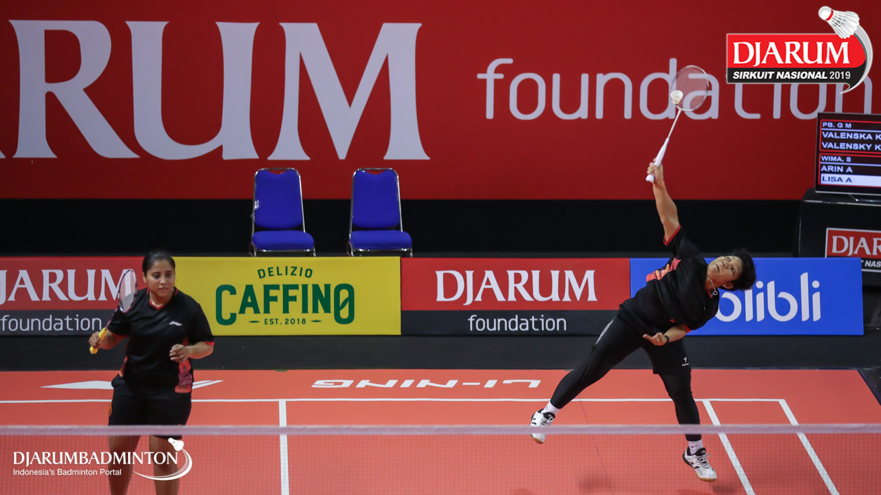 Arin Apriyanti +Lisa Anjeli (Wima, Sby) mengembalikan shuttlecock