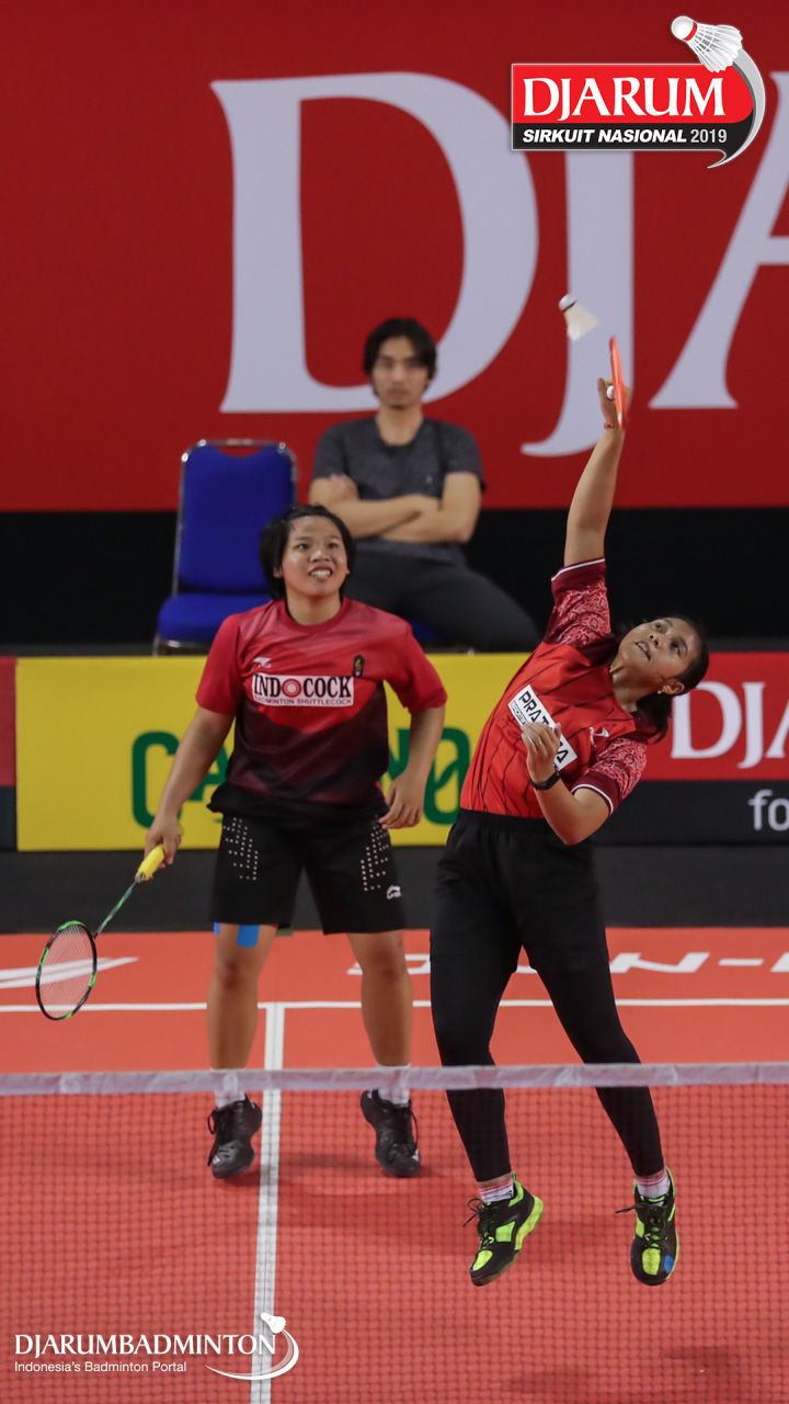 Elok Machsunnah+Muzammil Elya Tantri (Pratama Badminton Academy, Sby) menyambar pengembalian