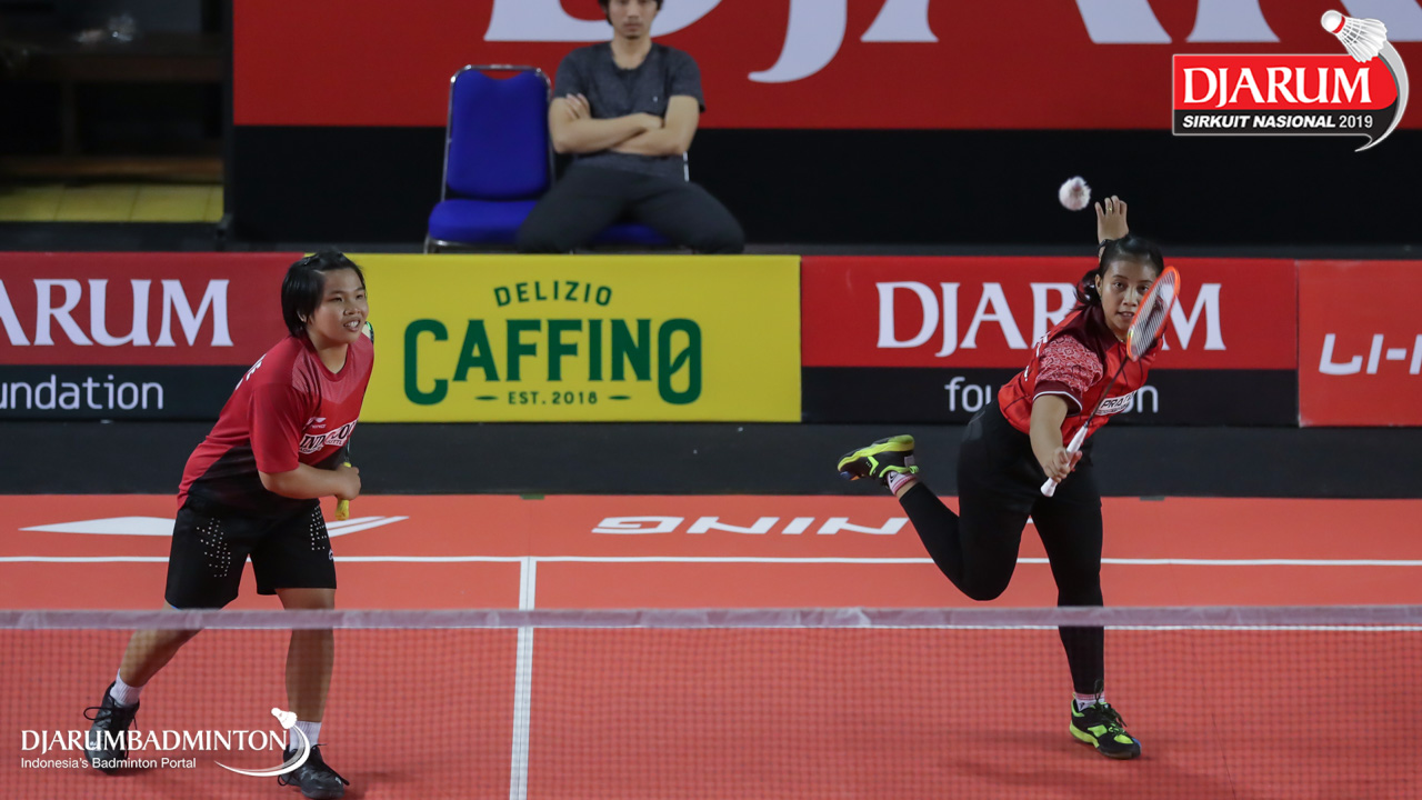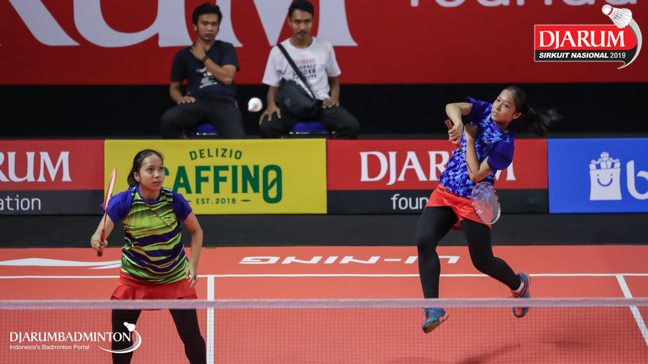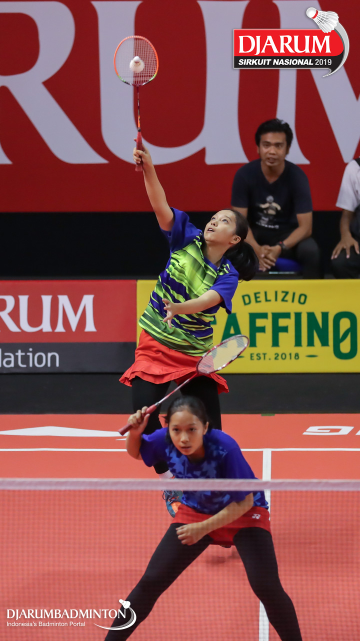 Valenska Karunia Salsyahbillah+Valensky Karunia Salsyahbilla (PB. Gemilang, Mataram) menyambar shuttlecock