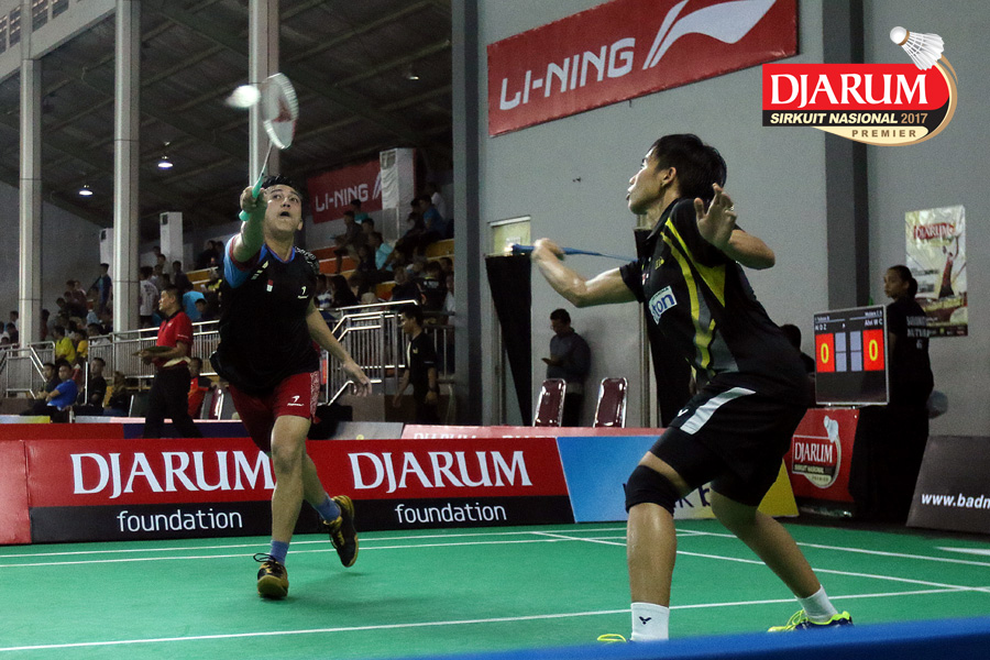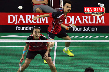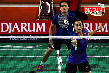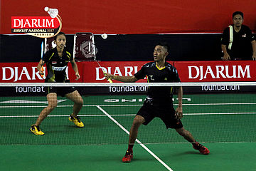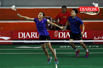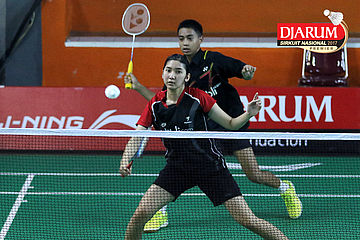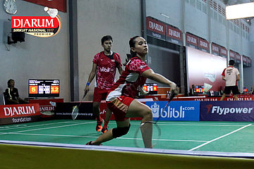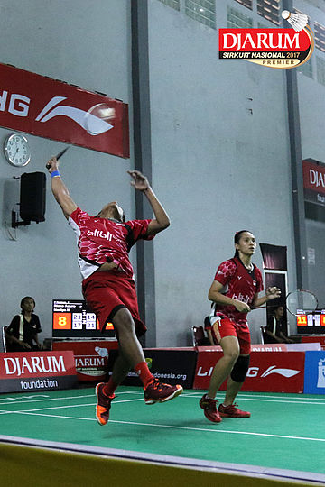 Rahmat Hidayat/Shelandry Vyola (Djarum Kudus) Mengembalikan Shuttlecock