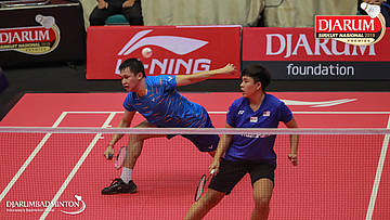 Rian Swastedian+Fee Teng Liew (Jaya Raya Jakarta+Malaysia) menyambut shuttlecock