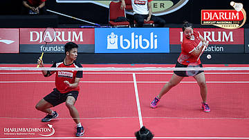 Rahmat Hidayat+Febi Setianingrum (PB Djarum, Kudus) bersiap menyambut shuttlecock