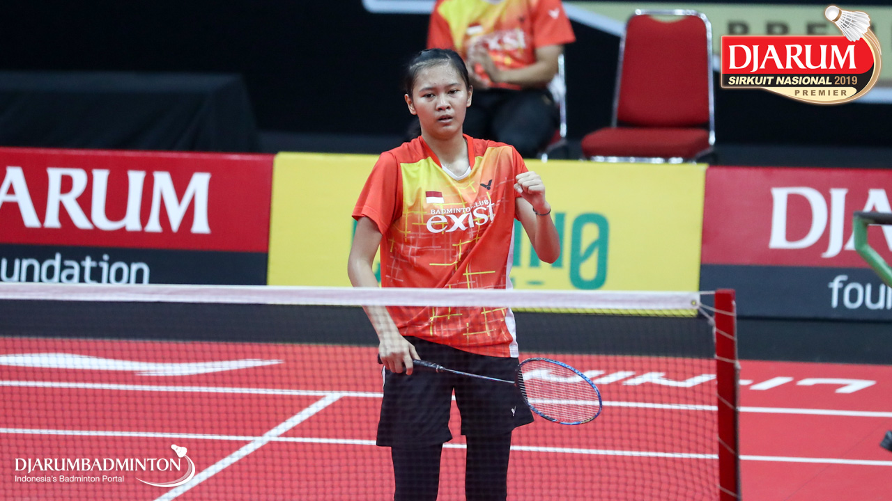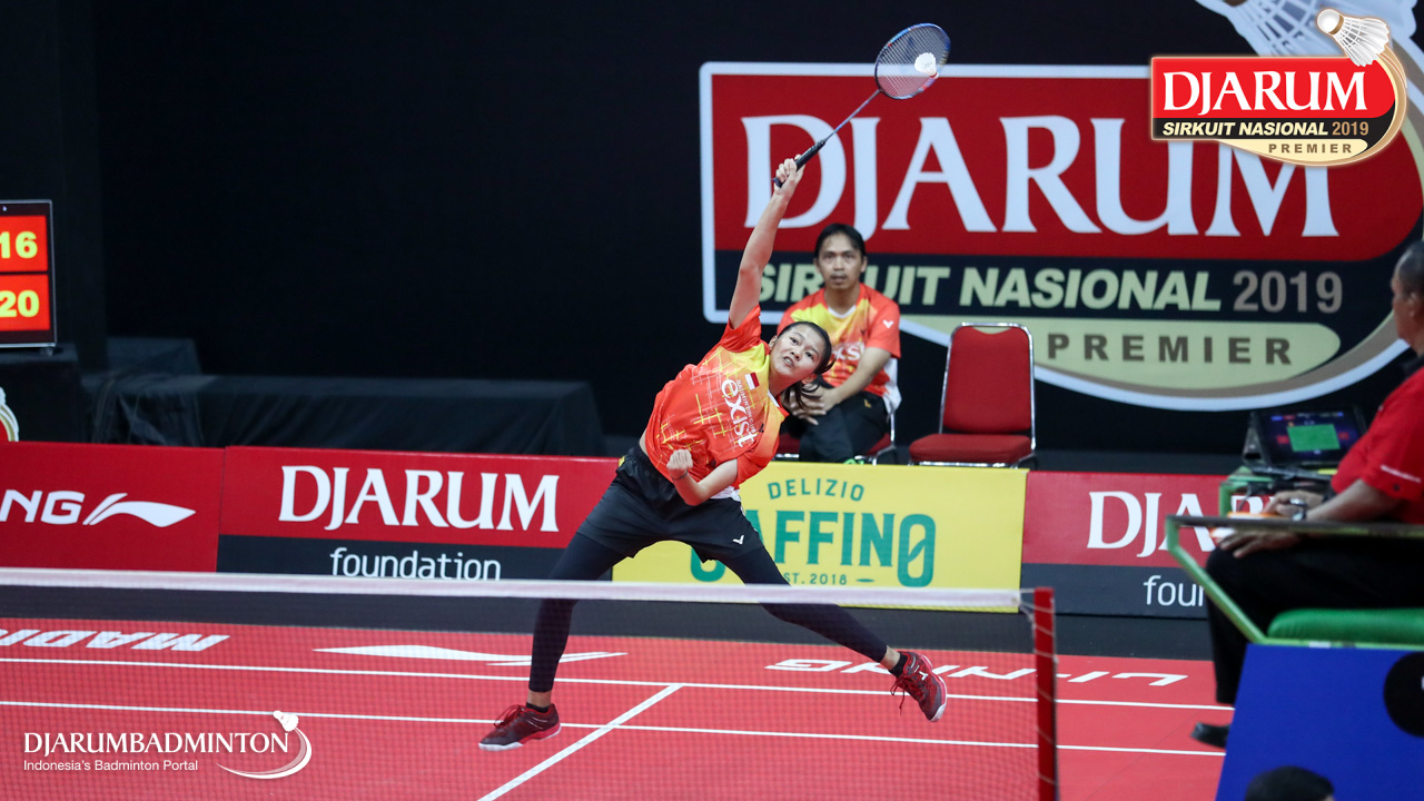 Siti Sarah Azzahra (Exist Badminton Club) menyambut serangan