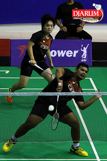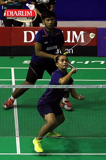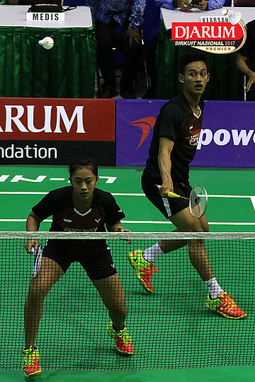 Daniel Marthin/Indah Cahya (Djarum Kudus) Mengembalikan Shuttlecock