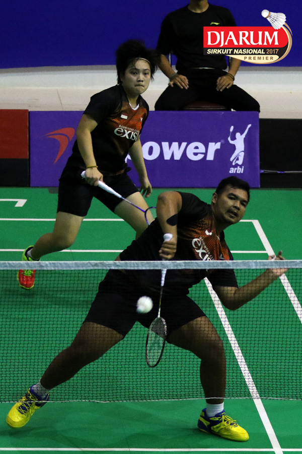 Farkhan Pandu/Enzelica Sutanto (Exist) Mengembalikan Shuttlecock