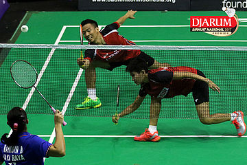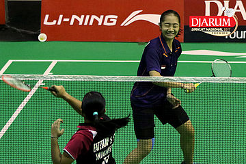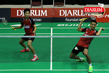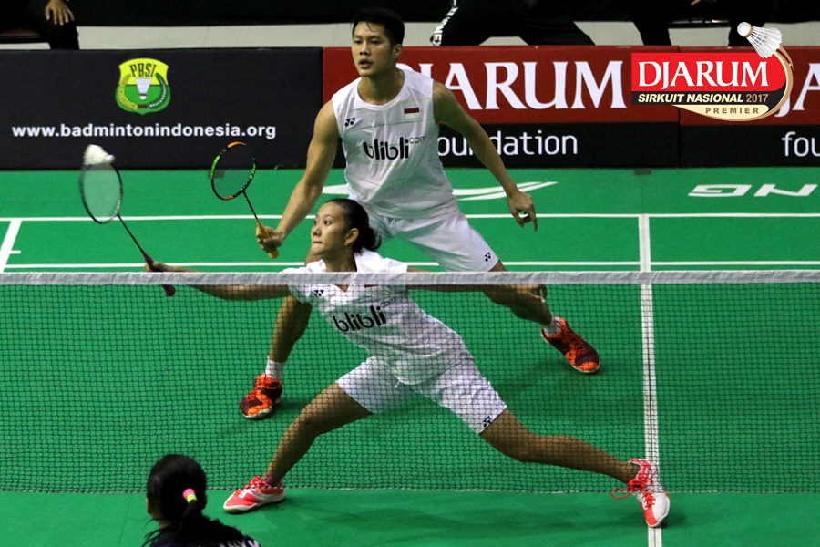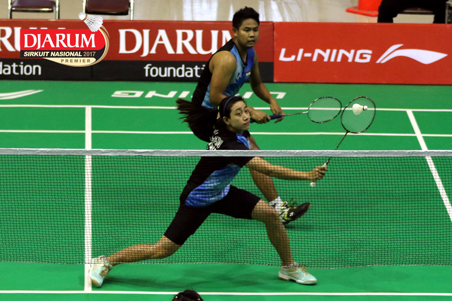 Lukhi Apri/Ririn Amelia (Djarum Kudus) Mengembalikan Shuttlecock