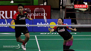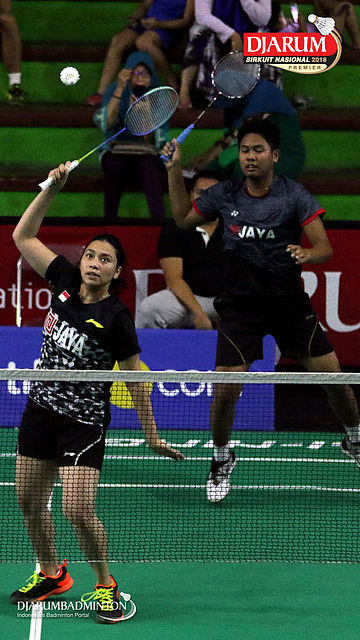 I Kadek Pande Dheva Brahmantya Putra/Sintia Dewi Yuliani (PB Djarum Kudus) Menyambar Pengembalian
