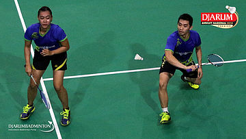 Irfan Fadhillah/Pia Zebadiah Bernadet (Jaya Raya Jakarta) Mengembalikan Shuttlecock