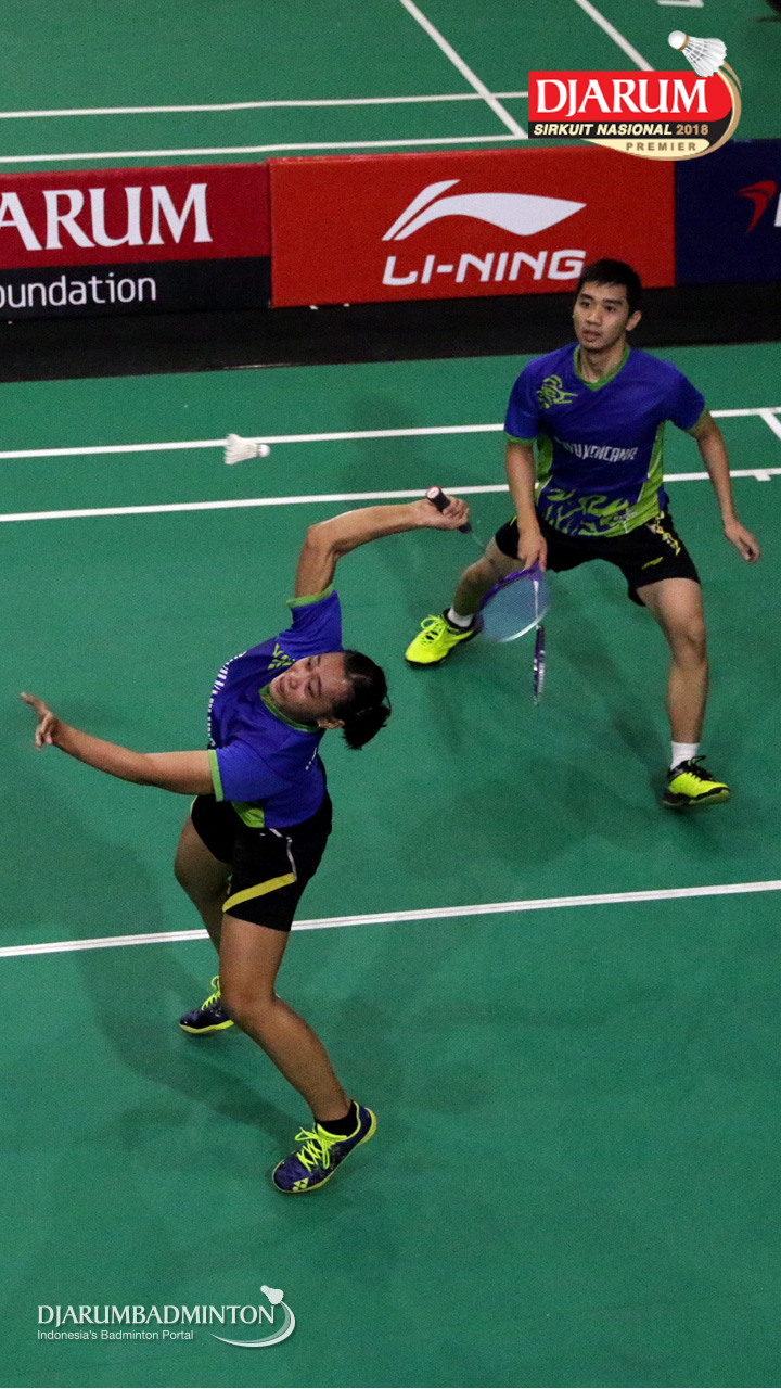 I Kadek Pande Dheva Brahmantya Putra/Sintia Dewi Yuliani (PB Djarum Kudus) Berusaha Menggapai Shuttlecock