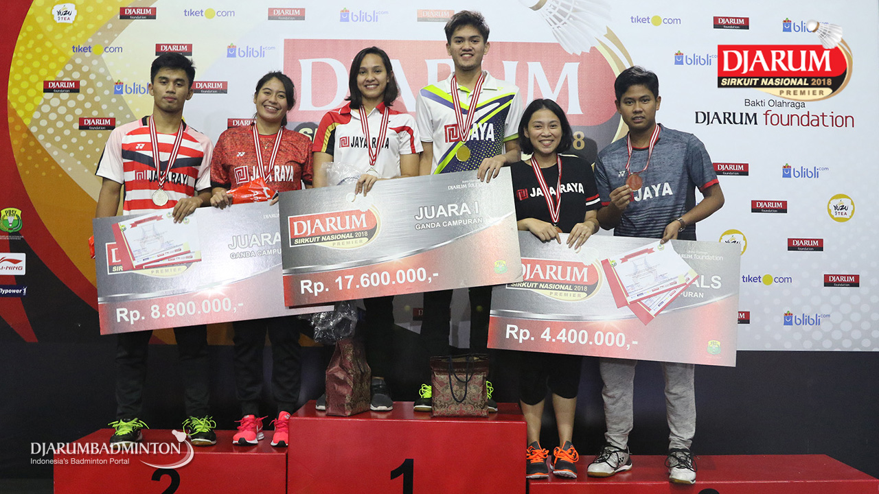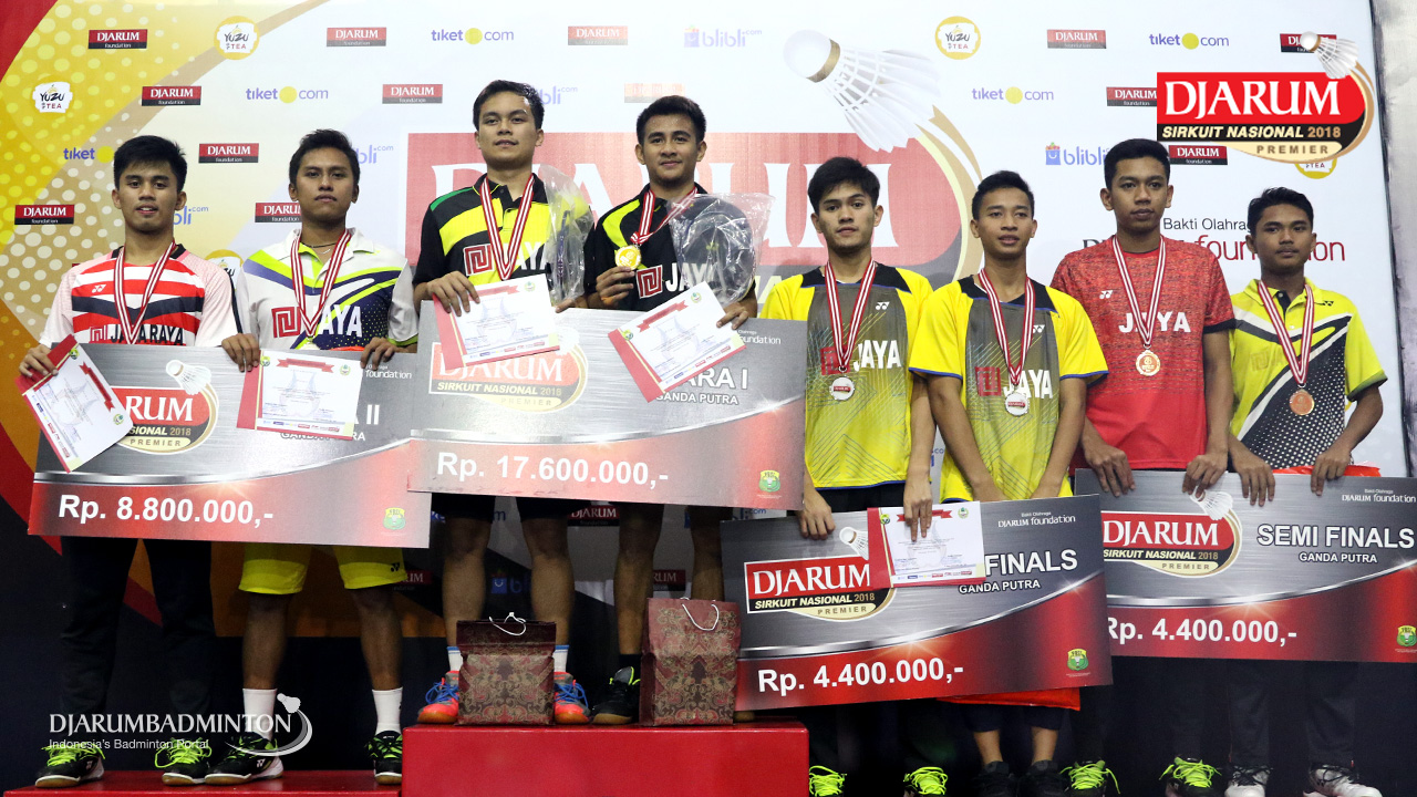 Runner Up, Syabda Perkasa Belawa (PB Djarum Kudus) Dan Juara Tunggal Dewasa Putra, Krishna Adi Nugraha (Jaya Raya Jakarta) Berfoto Di Podium