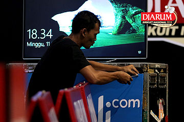 Seorang Pekerja Saat Mempersiapkan Perangkat Logistik Djarum Sirkuit Nasional Premier Li-Ning Jawa Tengah Open 2018 Di Booth Djarum Foundation