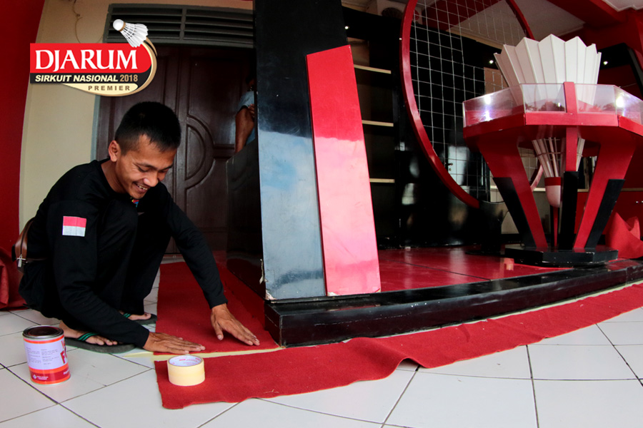Salah Satu Petugas Saat Mempersiapkan Perangkat Logistik Djarum Sirkuit Nasional Premier Li-Ning Jawa Tengah Open 2018