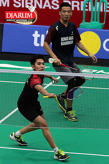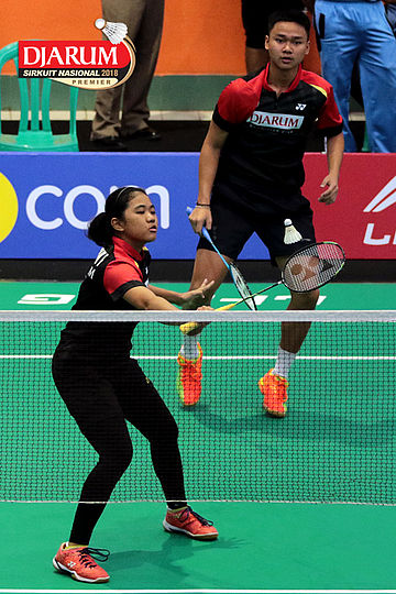 Lukhi Apri Nugroho/Ririn Amelia (Berkat Abadi/PB Djarum Kudus) Mengembalikan Shuttlecock