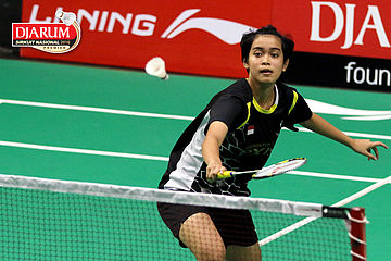 Silvi Wulandari (Djarum Kudus) Menghadang Serangan.