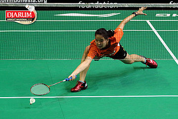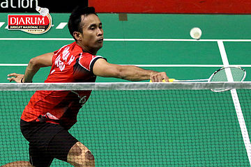 Dionysius Hayom Rumbaka (Djarum Kudus) Mengembalikan Shuttlecock.