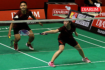 Ario Bimo Gagat Raino/Febby Valencia Dwijayanti Gani (Djarum Kudus) Bersiap Menghadang Pengembalian