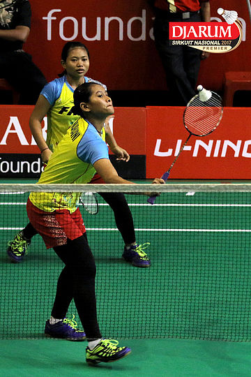 Dina Ghassani/Windi Siti Mulyani (Victory Bogor) Mengembalikan Shuttlecock