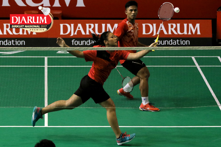 Amri Syahnawi/Brigita Marcelia Rumambi (Jakarta Badminton Club/Jaya Raya) Menghadang Pengembalian