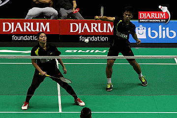 Ghana Muhammad Al Ilham/Gity Gabriel Rambing (PB Djarum Kudus) Mengembalikan Shuttlecock