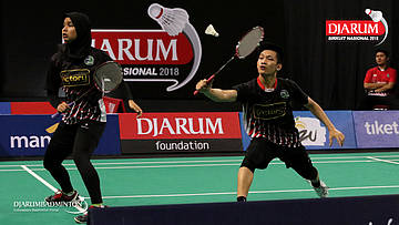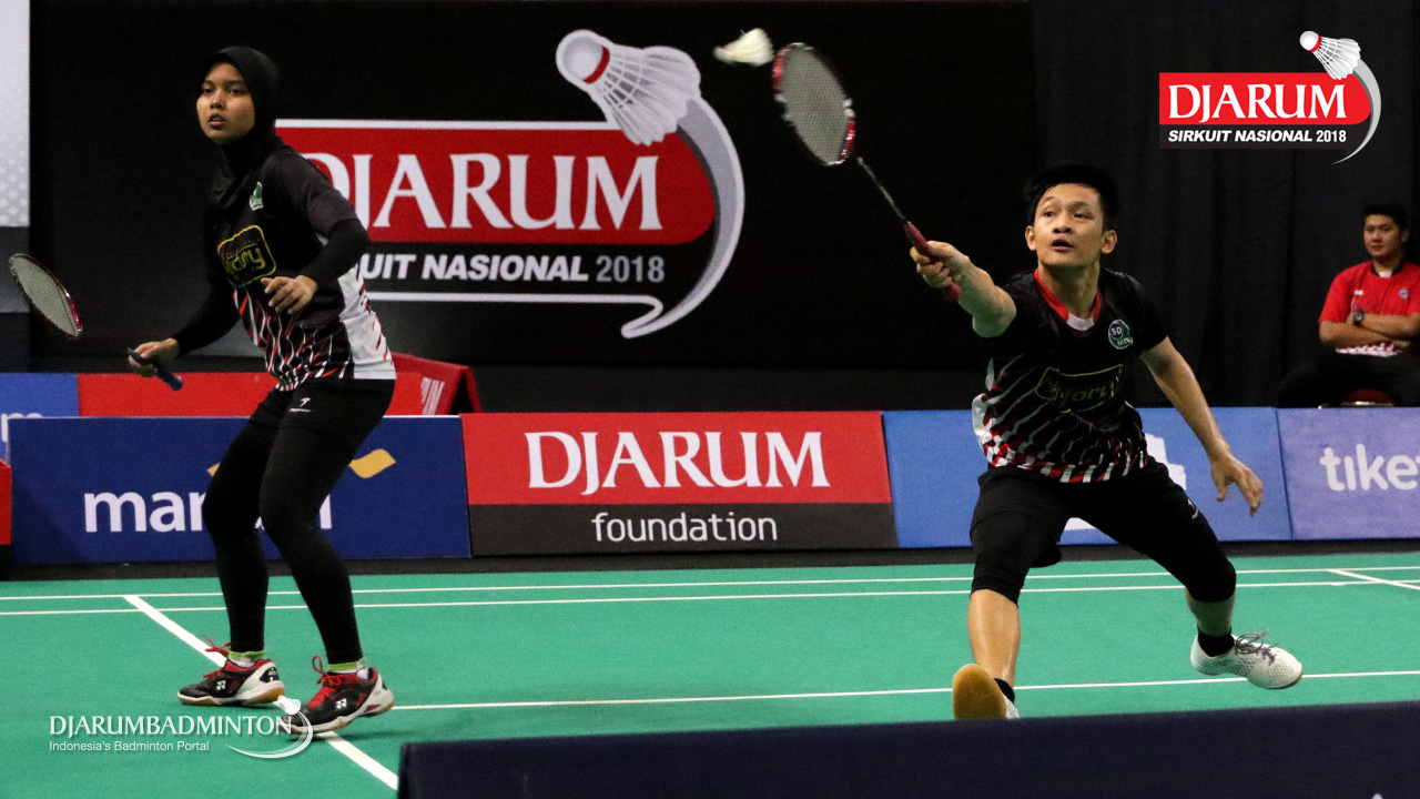 Muhammad Juan Elgiffani/Windi Siti Mulyani (PB Victory Bogor) menyambut pengembalian