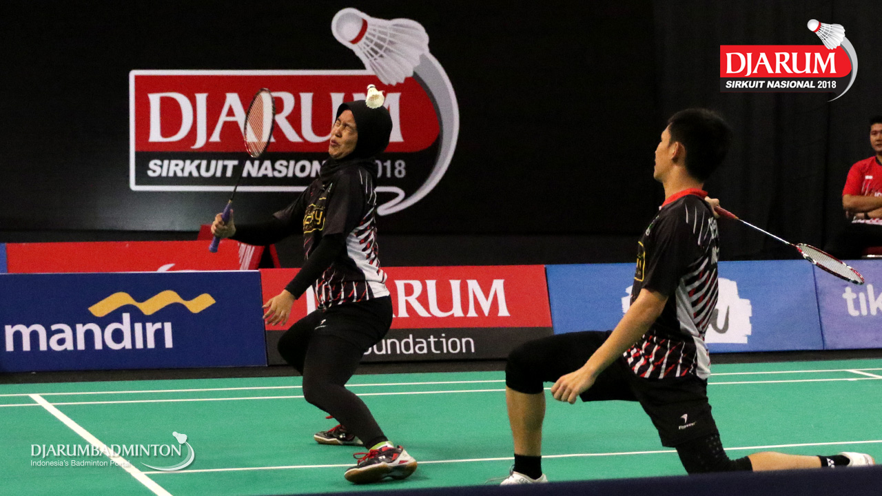 Muhammad Juan Elgiffani/Windi Siti Mulyani (PB Victory Bogor) megembalikan shuttlecock
