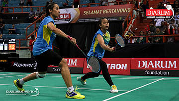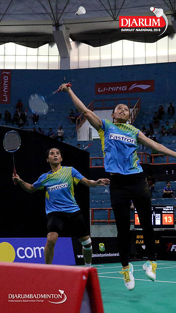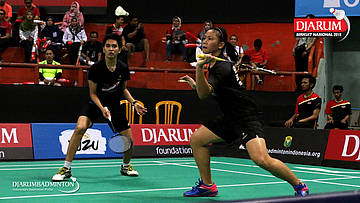 Dian Fitriani/Nadiya Melati (Pertamina Fastron) bersiap menyambar pengembalian