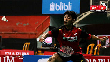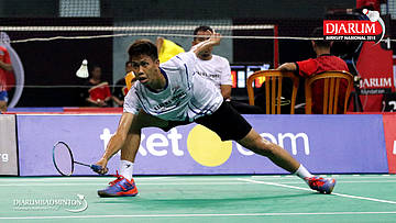Bagas Kristianto Nugroho (PB Djarum Kudus) menyambut pengembalian