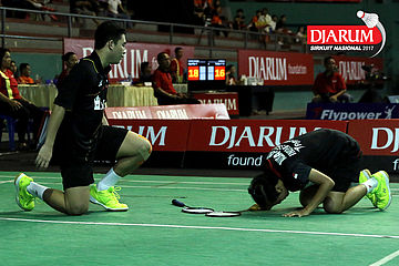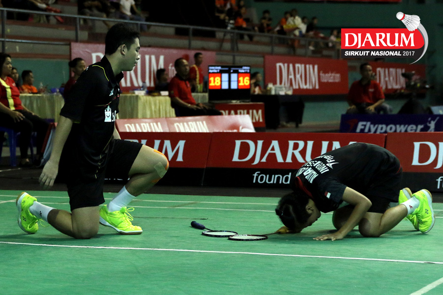 Selebrasi Kemenangan Dwiki Rafian/Aldira Rizki (Djarum Kudus)