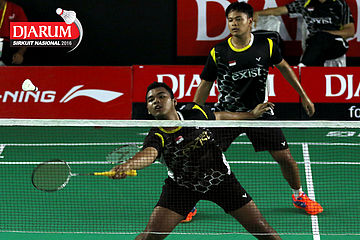 Farkhan Pandu/Yanuar Wahyu (Exist) menyambut serve.