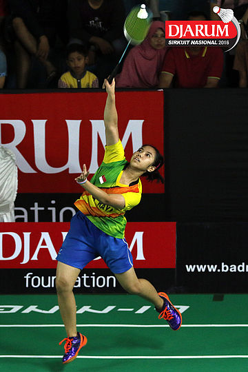 Ana Rovita (Pertamina Fastron) melepaskan serangan.