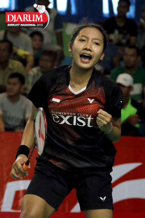 Selebrasi kemenangan Choirunnisa (Mutiara Cardinal).