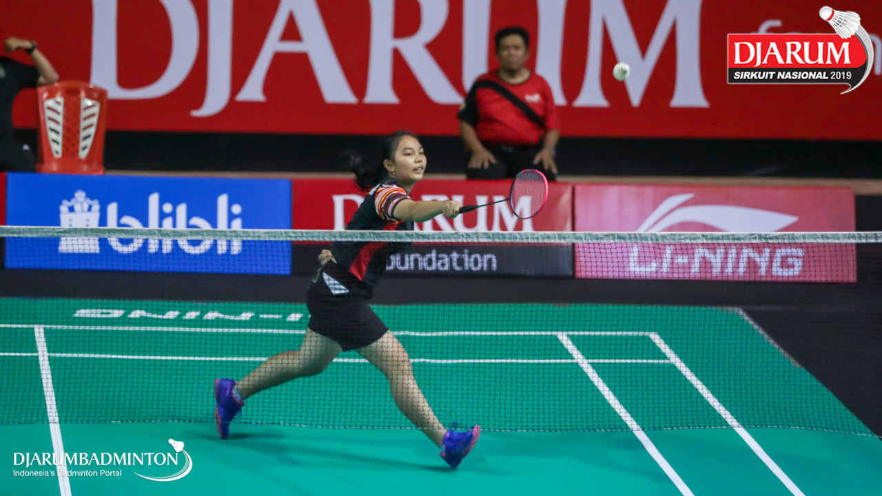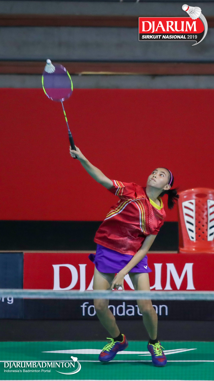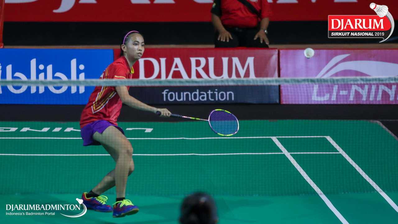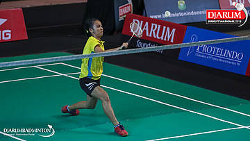 Ivanalie Gloria Lomban (Maesa Manado) bersiap menyambut shuttlecock