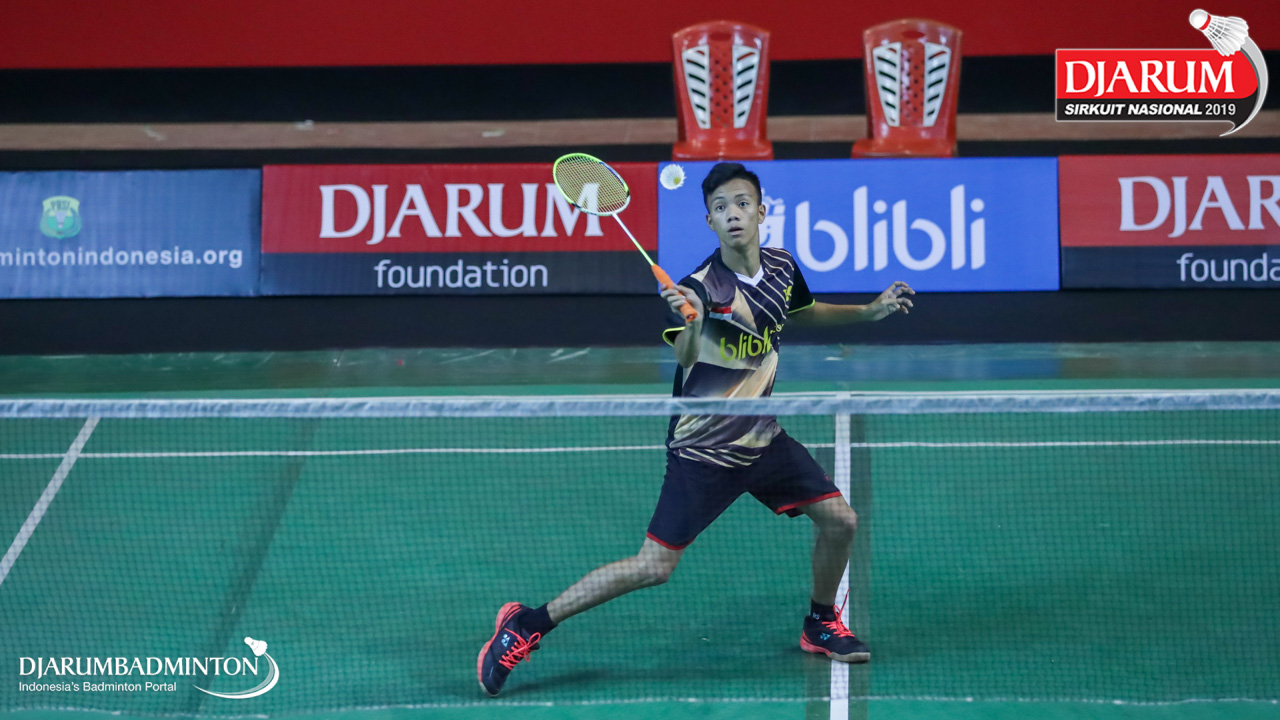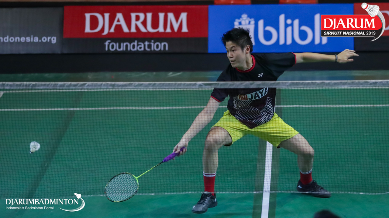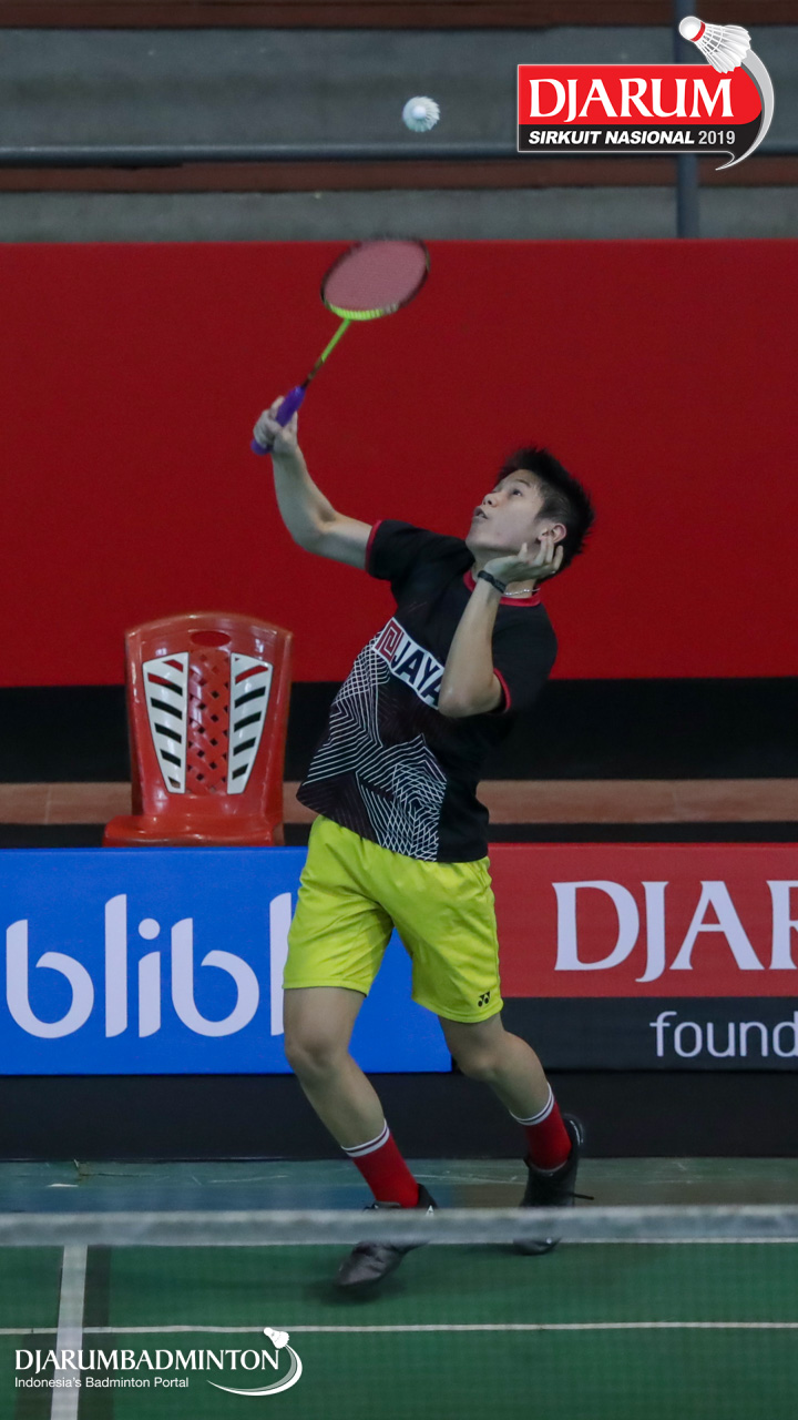Aria Dinata (Jaya Raya Jakarta) mengembalikan shuttlecock