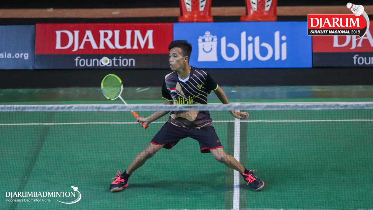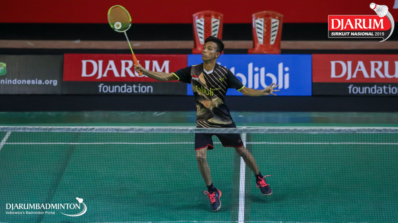Adityo Iskandar Daud (Pogambango, Gorontalo) bersiap mengembalikan shuttlecock