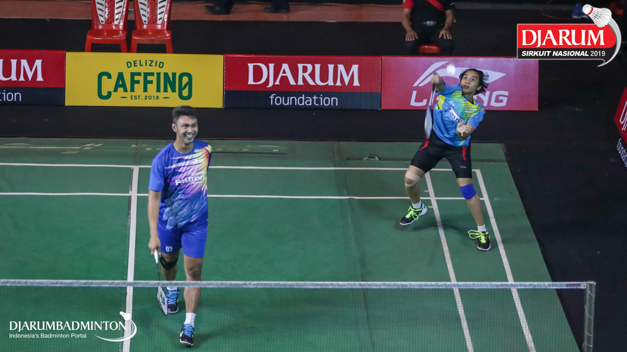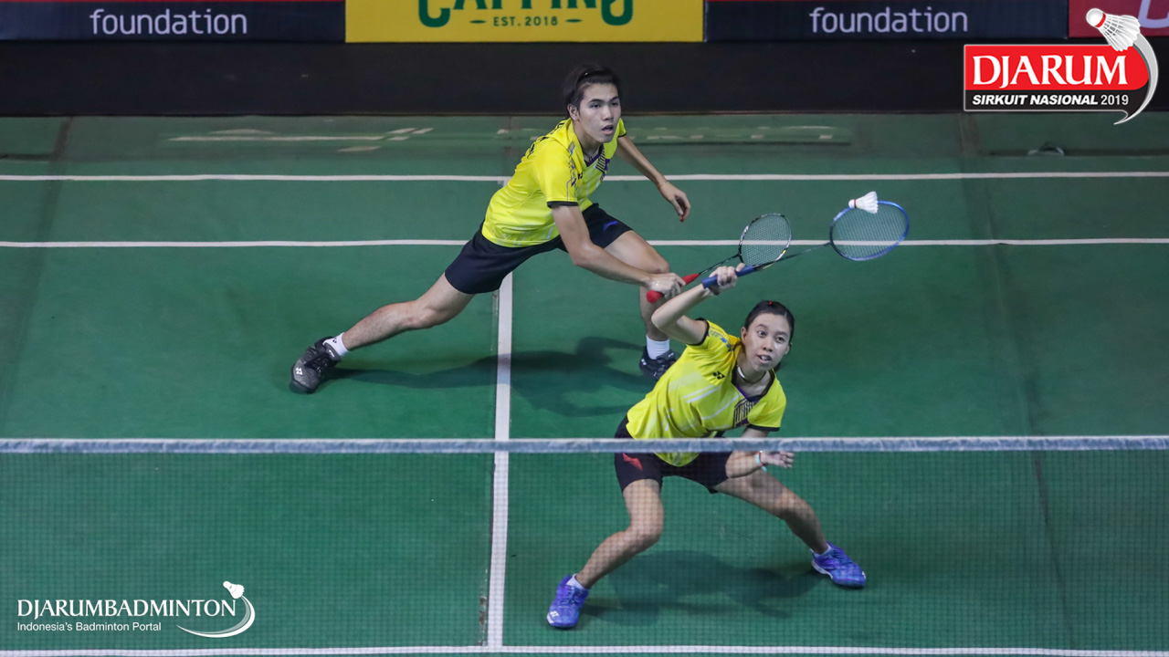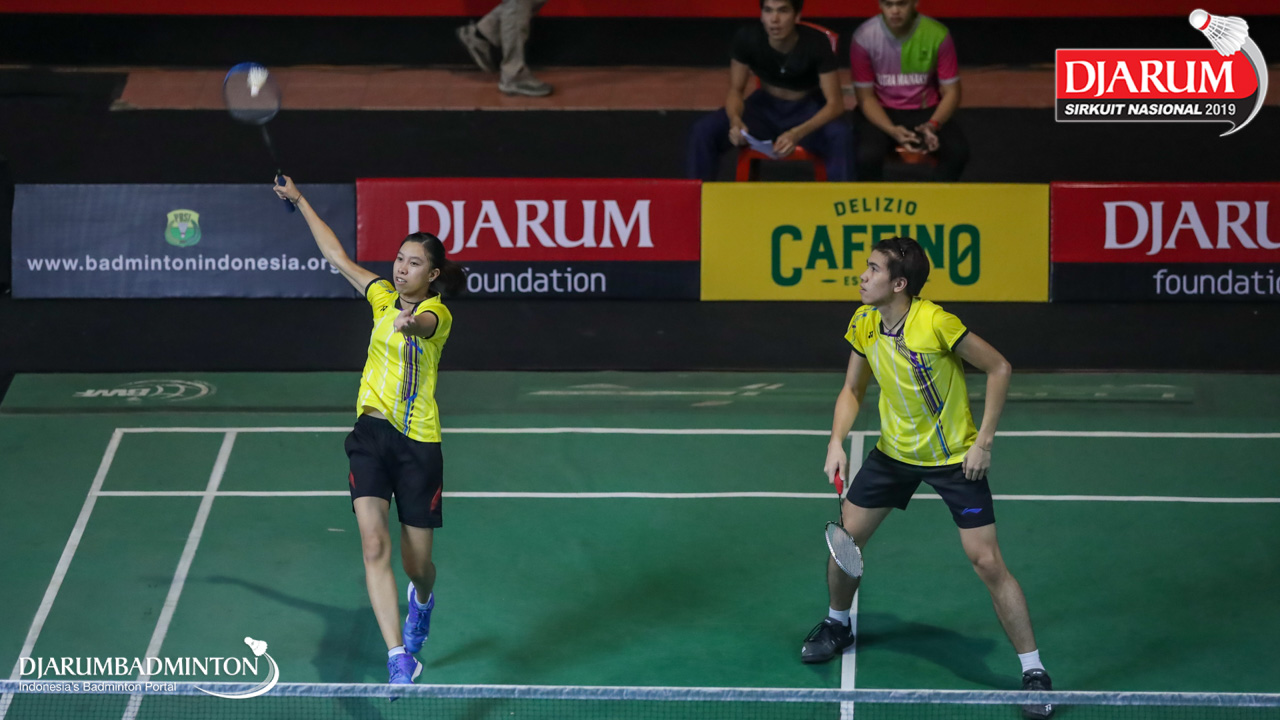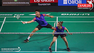 Ardiansyah Putra+Nadiya Melati (PB AIC Badminton Academy+Pertamina Fastron, Jakut) mengembalikan shuttlecock