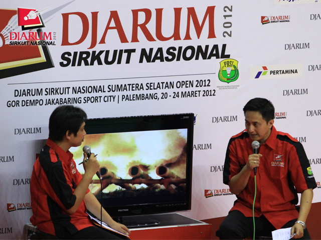 Pebulutangkis Senior Ricky Subagja tengah menjadi komentator Djarum Sirkuit Nasional Sumatera Selatan Open 2012 yang disiarkan langsung oleh stasiun televisi TVRI.