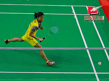 Ana Rovita (Djarum Kudus) mengembalikan serve ke arah Febby Angguni (Djarum Kudus).