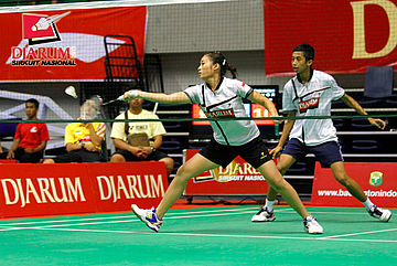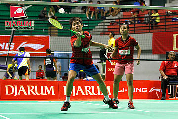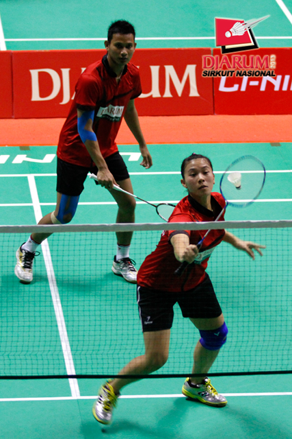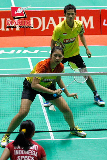 Jeka Wiratama/Chintia Rhizta (PB Djarum) berhasil menghadang pengembalian dari Mas Gito/Rhidatia (Pelatprov DKI Jakarta).