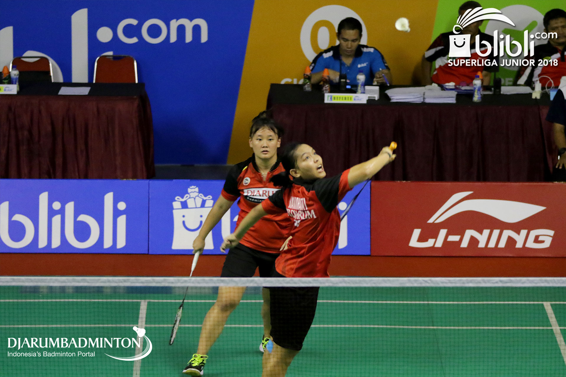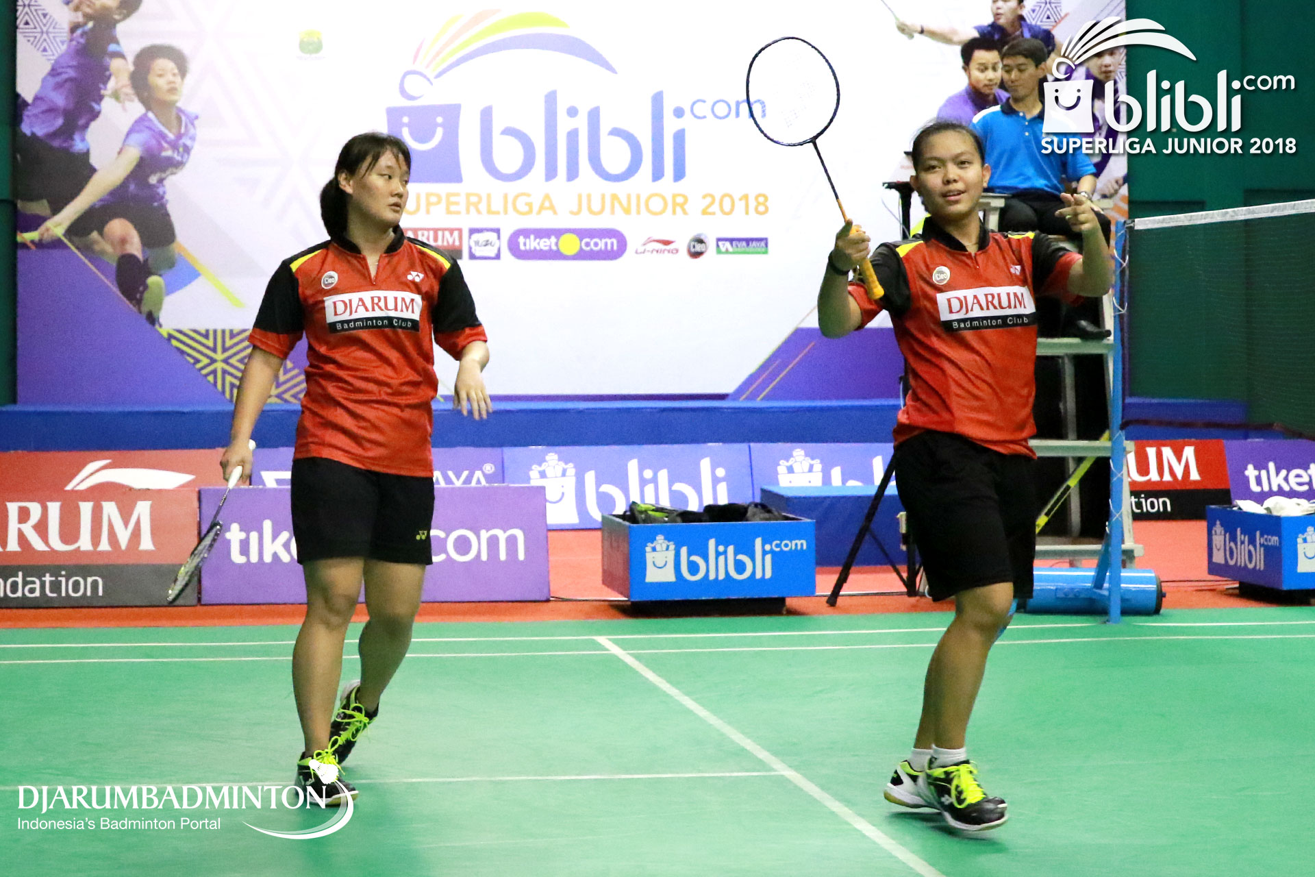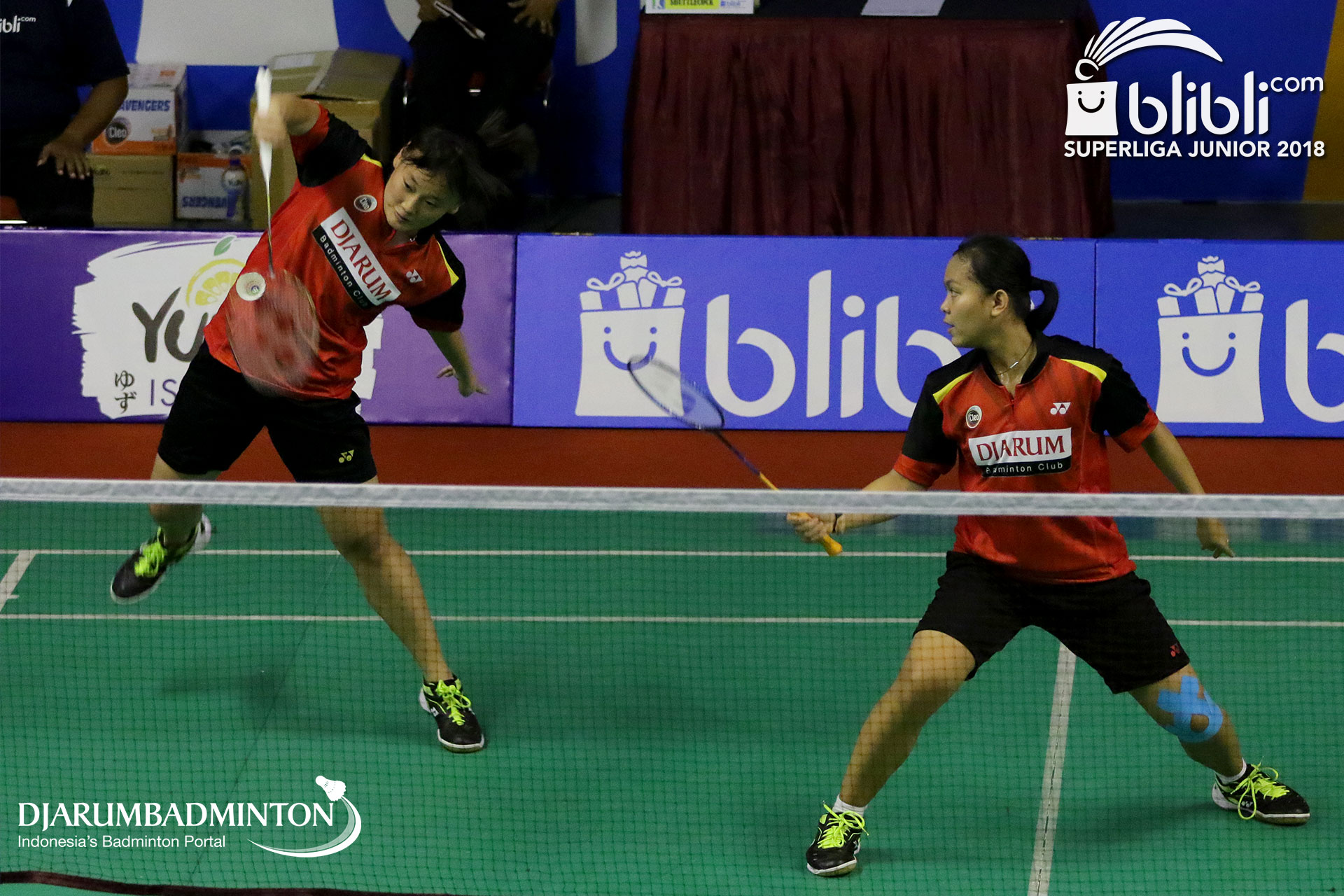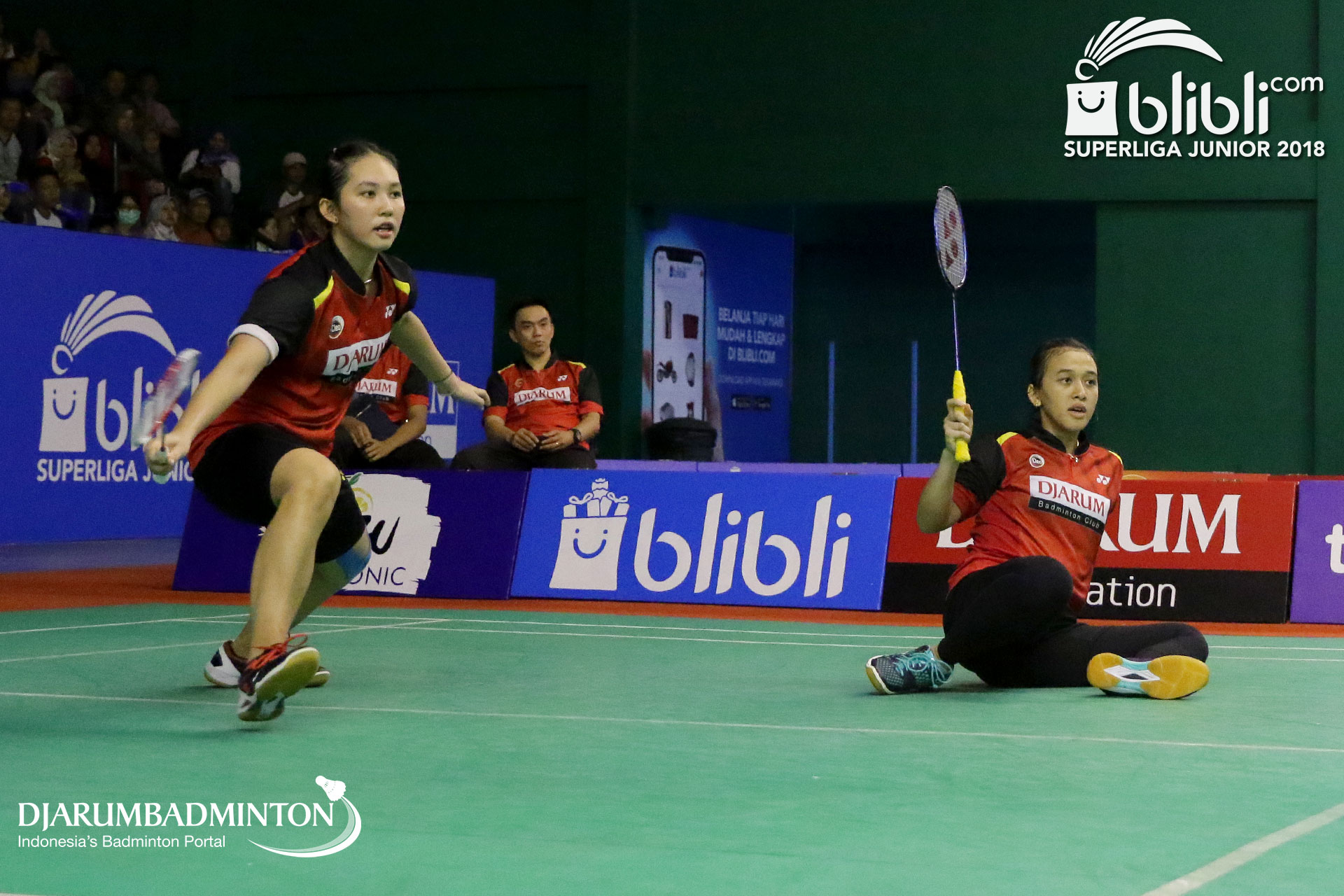 Agatha Imanuela/Siti Fadia Silva Ramadhanti (PB. DJARUM) menghadang serangan