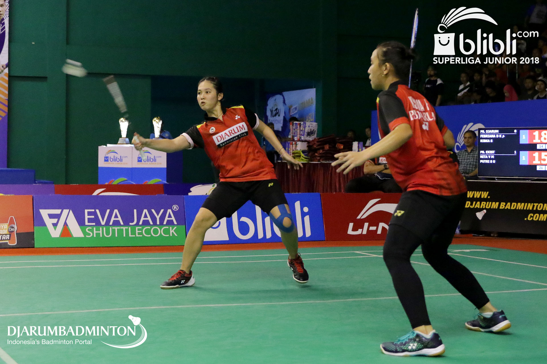 Febriana Dwipuji Kusuma/Ribka Sugiarto (PB. DJARUM) mengembalikan shuttlecock