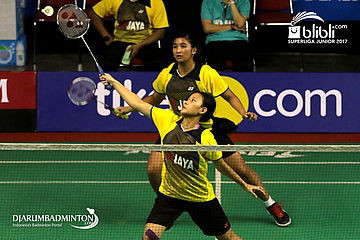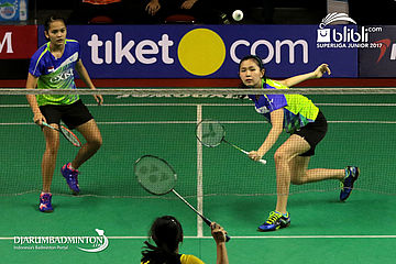 Angelica Wiratama/Hediana Julimarbela (Exist Badminton Club) Mengembalikan Shuttlecock